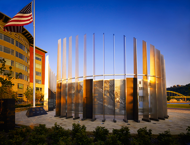 This memorial, designed to symbolize "Duty, Honor, and Love of Country," was built on the North Shore of the City of Pittsburgh to honor the brave men and women of Allegheny County who served their nation so valiantly in World War II.